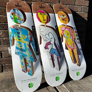 Girl Skateboards once again partners with Modernica Furniture for this amazing collection of boards and wooden Girl Skateboards logo dolls.