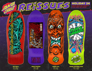 We're excited to be carrying the line of limited edition re-issue decks from Santa Cruz. This holiday release brings us 4 limited edition colorways never be to re-issued again.