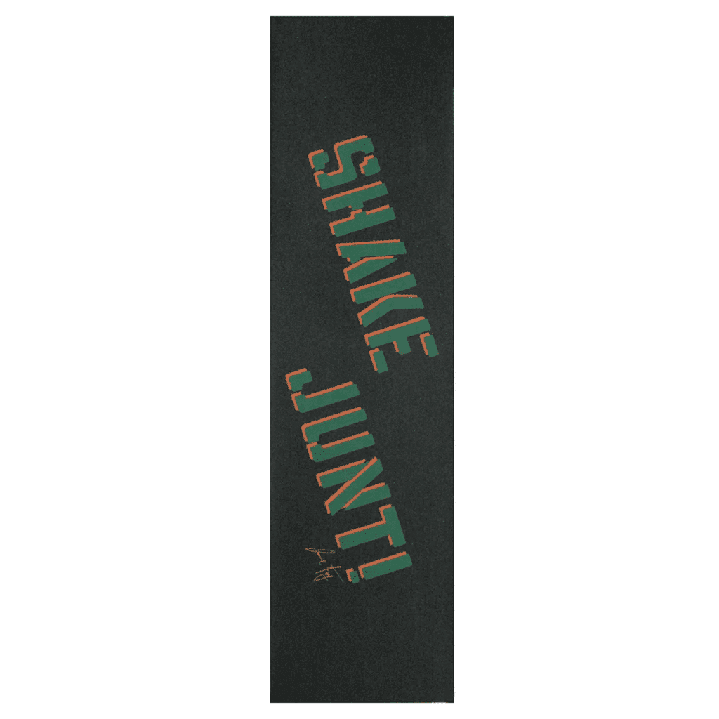 Jamie Foy pro model Shake Junt Griptape in green with an orange drop shadow.