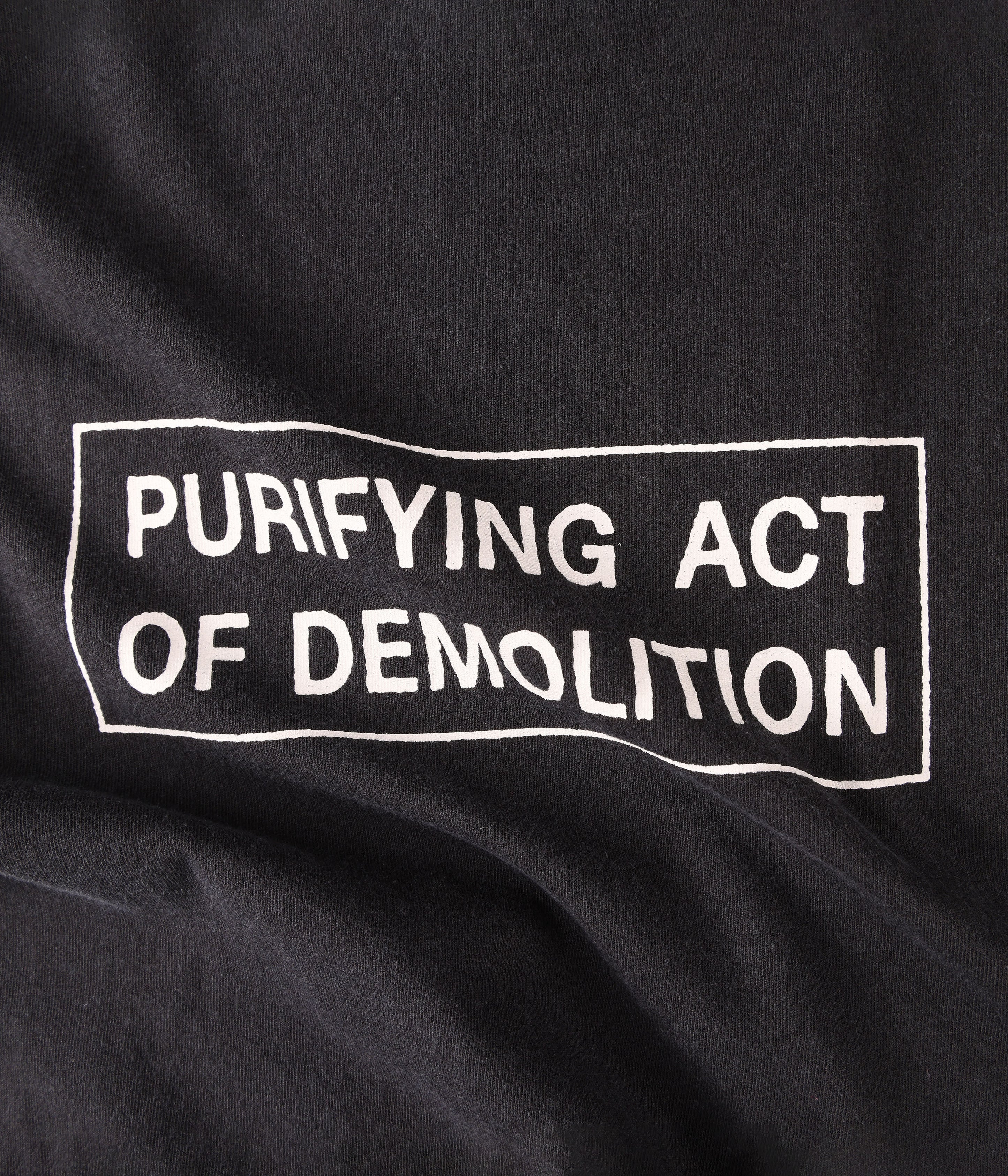 CRAFTED IN A PREMIUM 200GSM JERSEY COTTON AND DELIVERED IN OUR STANDARD FORMER T-SHIRT BLOCK FOR A RELAXED AND COMFORTABLE FIT. FEATURING FRONT AND BACK GRAPHIC SOFT HAND PLASTISOL SCREEN PRINT AND OUR SIGNATURE VINTAGE "MERCH-WASH" FOR THAT PERFECTLY WORN-IN FEEL.