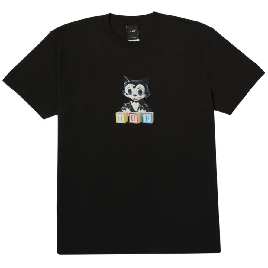 HUF black cat and blocks graphic t-shirt.