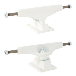 Independent has been the most popular skateboard truck brand for us and for good reason, they have also been the #1 choice of trucks for pro skaters since 1978. Their trucks come in many different forms; the forged hollow to shed weight without sacrificing durability, the forged titanium for superior strength and lighter weight, the mid for better kingpin clearance, and 12 different stages of trucks that vary in materials and hangar shape over the years. Independent is also popular for their clothing and quality hardware for skateboarding.