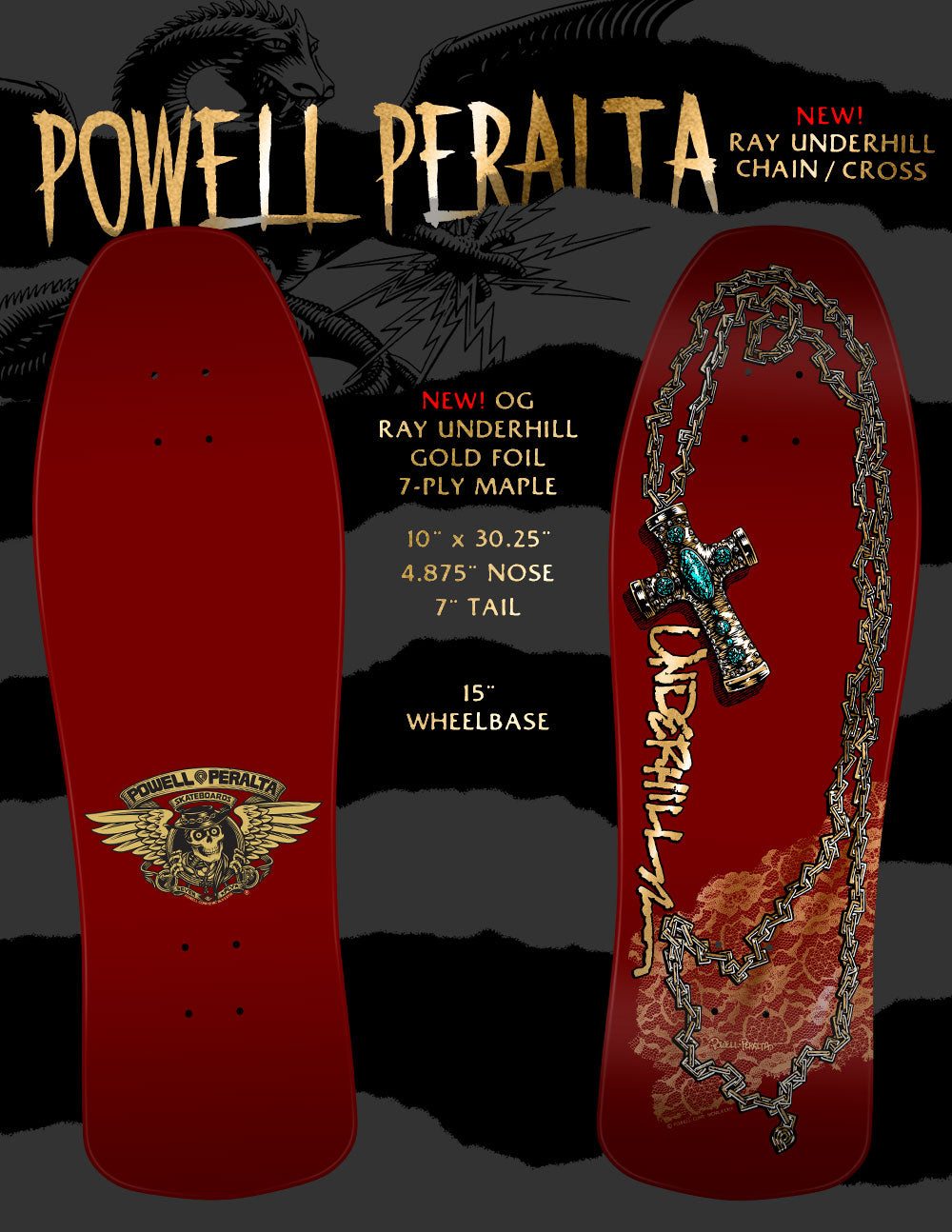 POWELL PERALTA - UNDERHILL CHAIN & CROSS DECK (10) Burgundy & Gold Foil