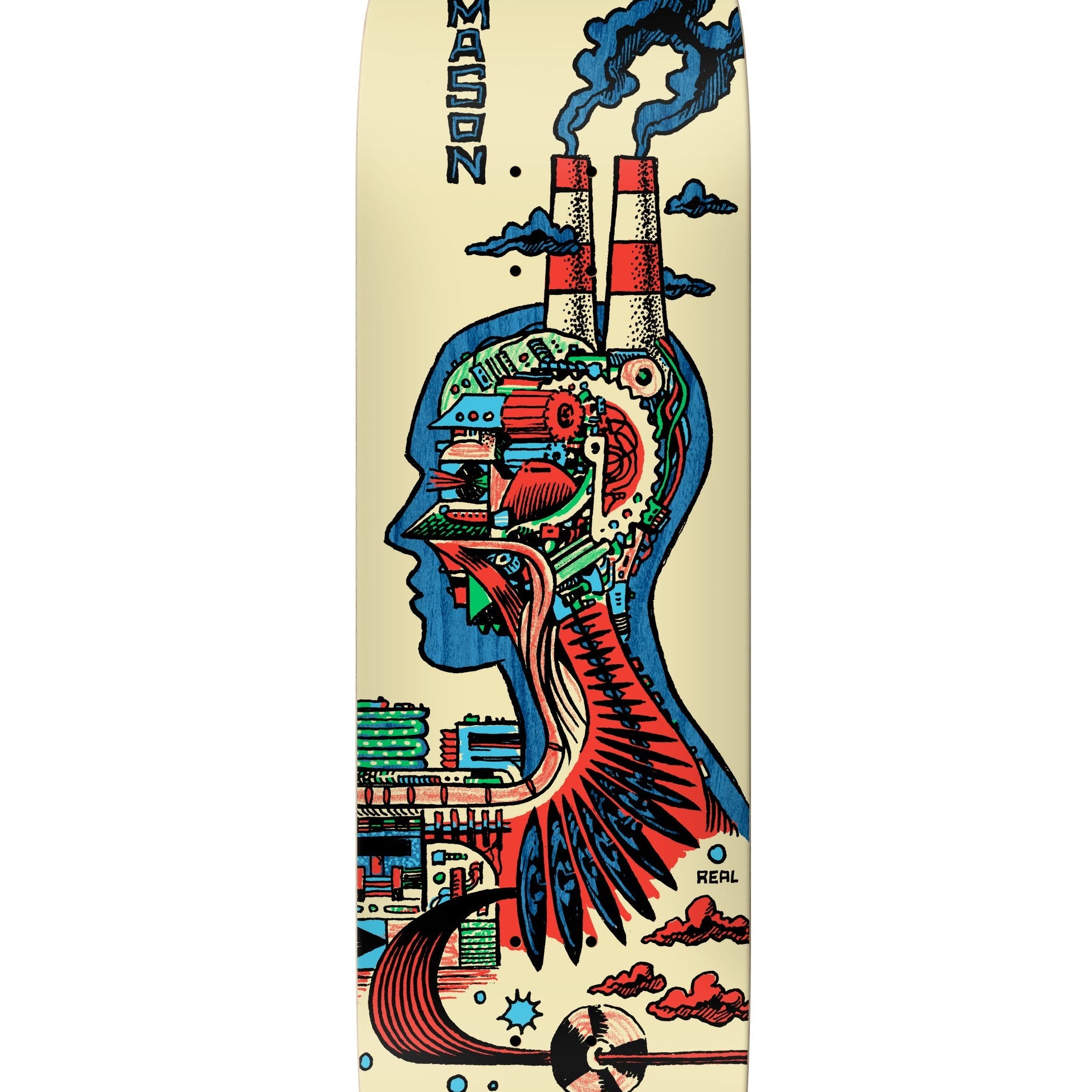 The Real Skateboards Mason Silva Artificial Deck delivers pro-level performance with standout artwork by Clay Halling. Built from premium 7-ply North American maple, this deck offers the strength, pop, and durability Mason demands for fast, powerful street skating. Assorted top stains give each deck a unique finish, while the 8.28" x 31.7" shape with a 14.12" wheelbase provides a responsive, well-balanced feel that’s ideal for technical tricks, gaps, and all-around control.