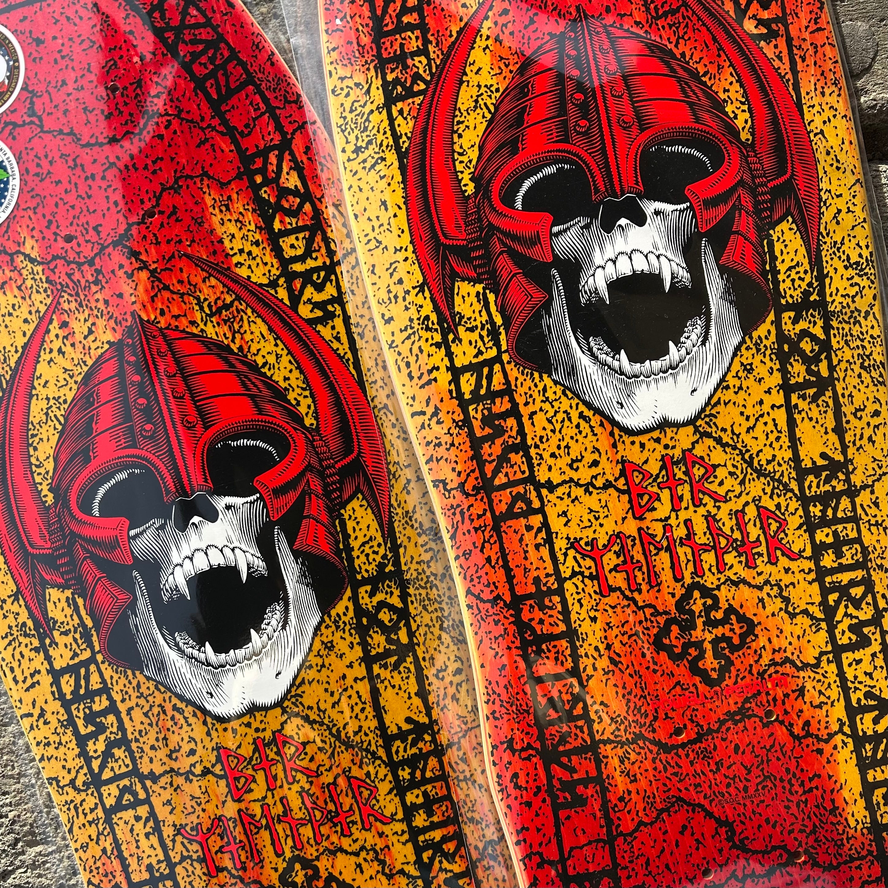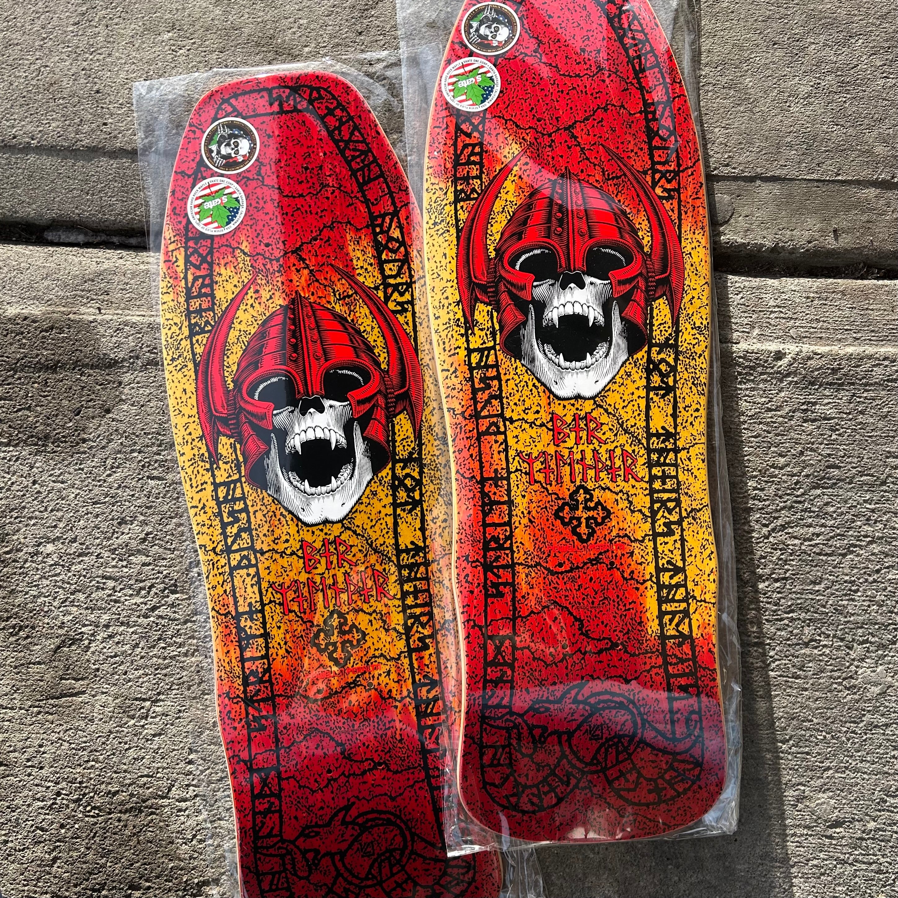 Per Welinder's iconic Nordic Skull graphic on a rad red and yellow fade.