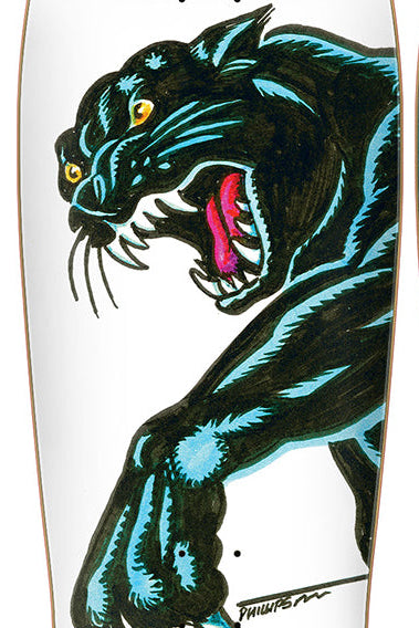 The Santa Cruz Skateboards Natas Sketch Panther Reissue deck features original Natas Panther sketch artwork by legendary Santa Cruz artist Jim Phillips on Natas Kaupas' OG 10.5" shape with a 15.4" wheelbase and Old School concave.