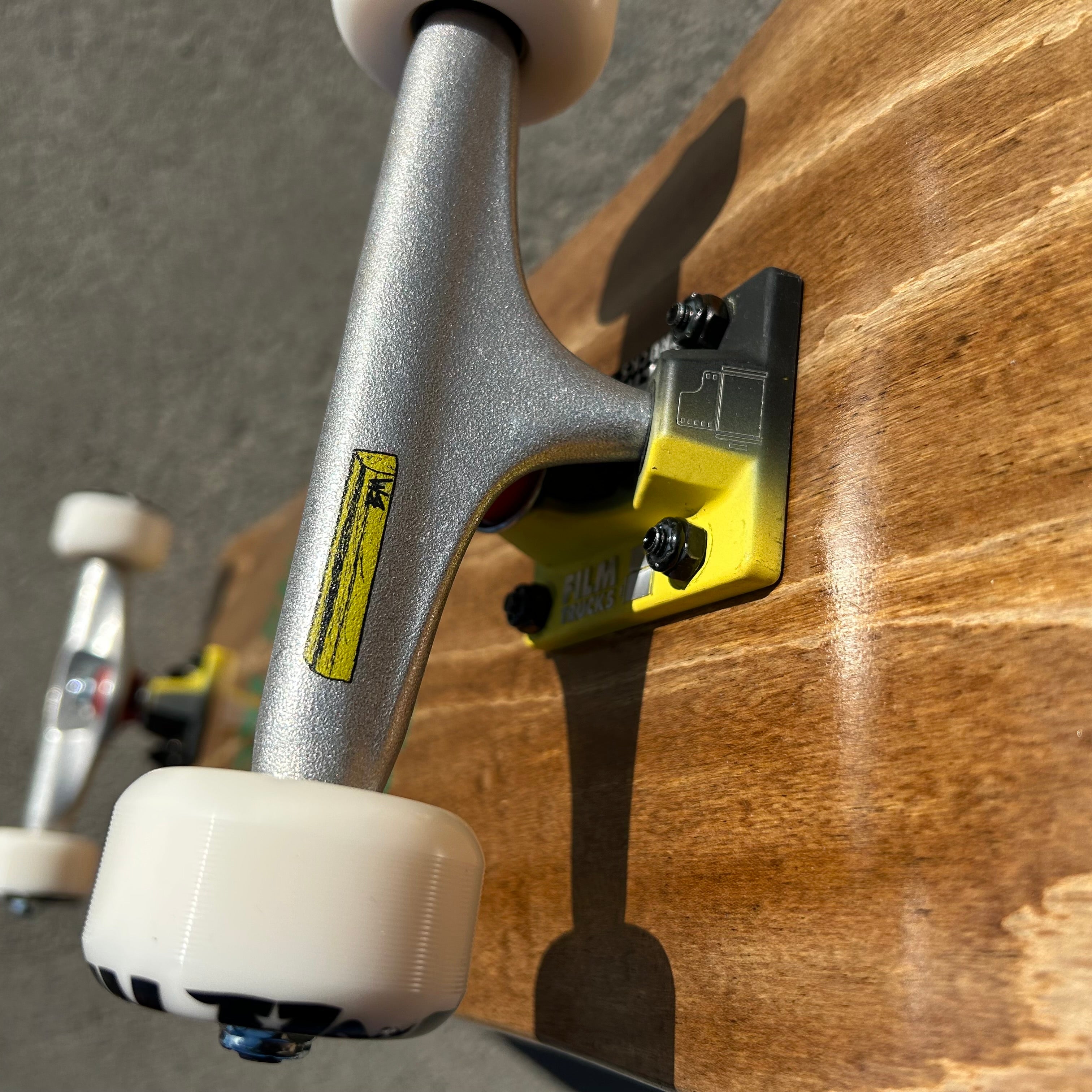 Film trucks, which is an independent truck brand out of France and started by legendary skater and founder of Cliché Jeremie Daclin. DGK 99Durometer wheels, and mini logo bearings. Gripped with Jessup griptape and Independent hardware.